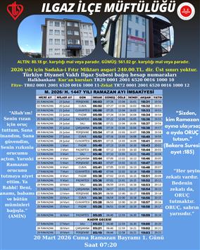 2026 YILI ILGAZ MÜFTÜLÜĞÜ RAMAZAN AYI İMSAKİYESİ